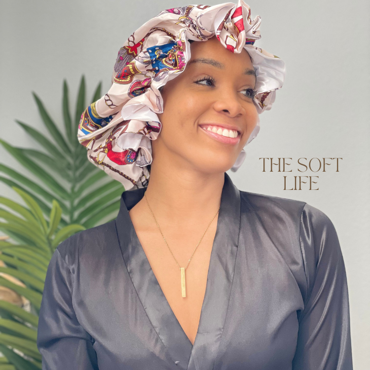 Comfort and secure, the ruffles keep your bonnet in place while you sleep.